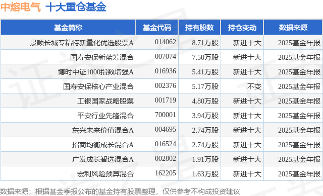 根据2025基金年报公募基金重仓股数据,重仓该股的公募基金共20家,其中持有数量最多的公募基金为景顺长城基金的景顺长城专精特新量化优选股票A。景顺长城专精特新量化优选股票A目前规模为5.15亿元,最新净值1.0664(3月17日),较上一交易日下跌2.27%,近一年上涨36.19%。该公募基金现任基金经理为徐喻军 曾理。徐喻军在任的基金产品包括:景顺长城量化平衡混合A,管理时间为2017年12月27日至今,期间收益率为58.32%;景顺长城中证500指数增强A,管理时间为2019年3月25日至今,期间收益率为96.2%;景顺长城量化成长演化混合A,管理时间为2022年2月19日至今,期间收益率为17.43%。曾理在任的基金产品包括:景顺长城中证500行业中性低波动指数A,管理时间为2019年7月16日至今,期间收益率为98.72%;景顺长城沪港深红利成长低波指数A,管理时间为2019年9月6日至今,期间收益率为79.71%;